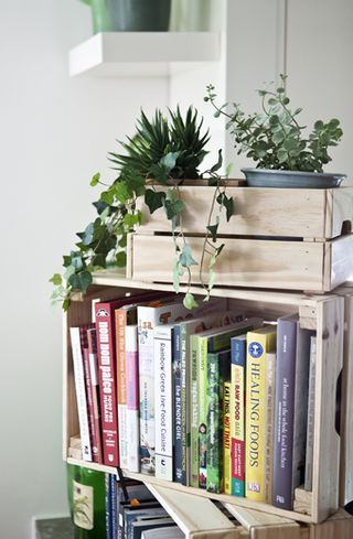 menyimpan-koleksi-buku-di-keranjang-kayu