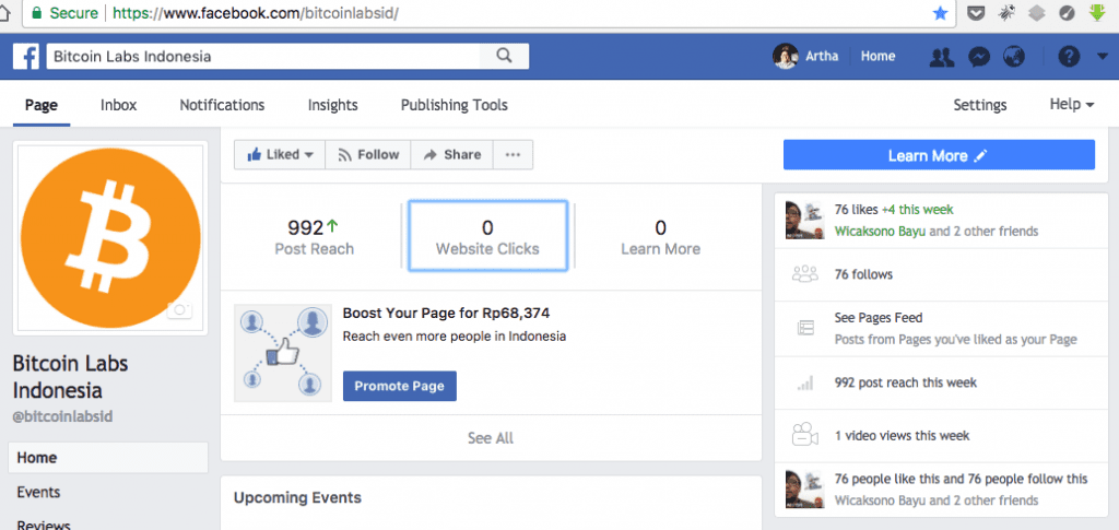 di Facebook Page, saat tulisan ini dibuat, sudah 76 orang like page bitcoinlabs.id