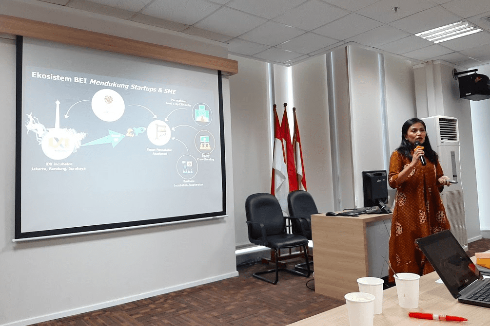 Kesempatan selanjutnya adalah sambutan dari ibu Cita Melisa, perwakilan IDX-Incubator. Beliau menjelaskan mengenai apa itu IDX-Incubator, yang bertujuan agar semakin banyak perusahaan yang bisa Go Public, terutama perusahaan-perusahaan start-up.