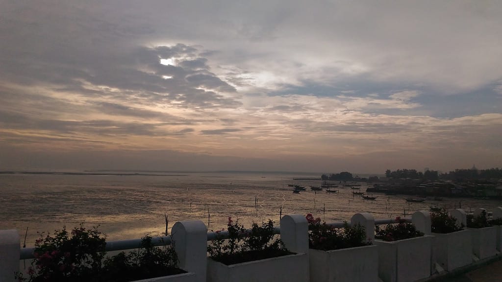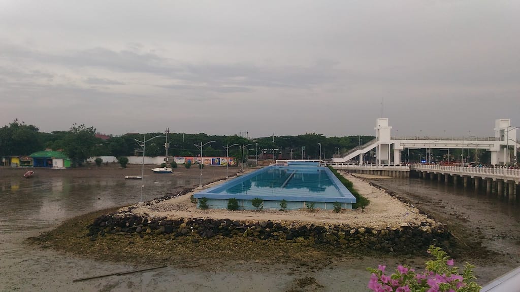 oya, dari jembatan ini kamu juga bisa melihat pemandangan yang indah, misalnya pemandangan pantai Ria Kenjeran yang ternyata gak kalah lho dengan pemandangan sun set di tempat lain, so harusnya bangga kalau kamu itu orang Suroboyo.