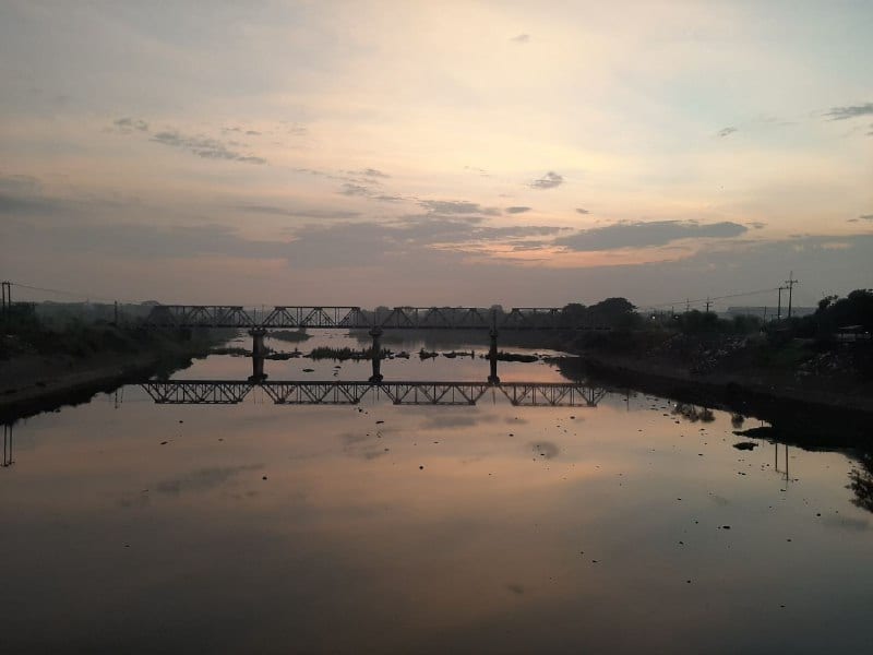 Waktu menunjukkan pukul 4.45. Akhirnya aku berhentikan sepeda dan mengambil beberapa foto dari atas jembatan.