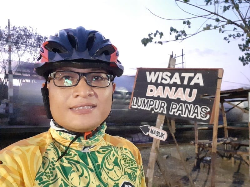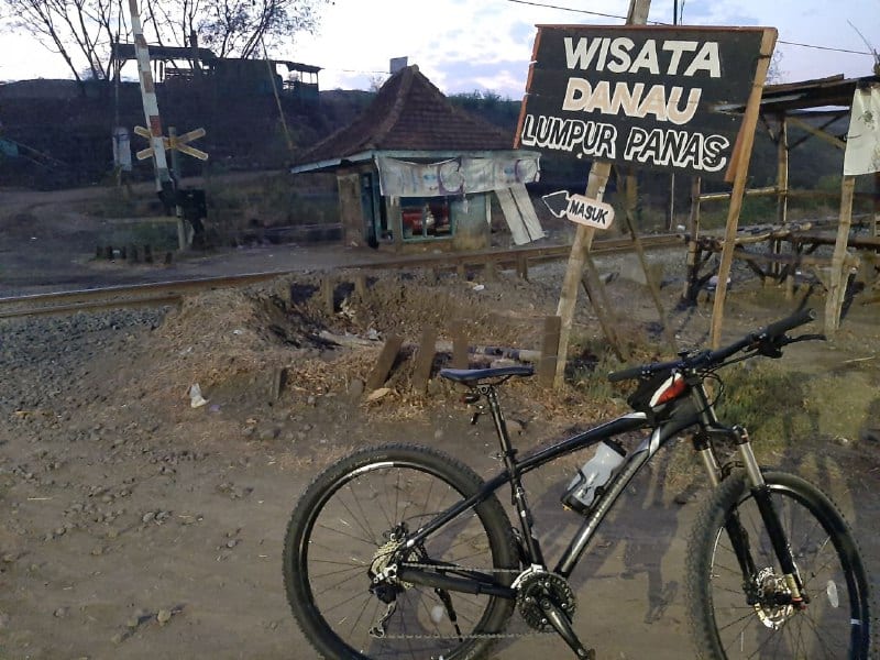 Ketika melewati daerah terdampak lumpur panas, aku sempatin dulu foto di depan salah satu pintu masuknya. Tahun 2007-an aku sempat mengunjungi tempat ini ketika kakakku datang ke Surabaya. Waktu itu bingung mau ke mana ajak kakakku yang dari kalimantan ini. Ya sudahlah ajak ke wisata lumpur aja lah. Dan pada saat itu memang lagi hangat-hangatnya bencana lumpur.