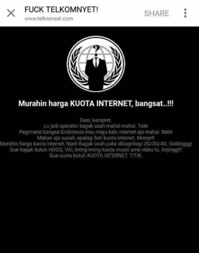 Hari ini website telkomsel di http://www.telkomsel.com didapati dirubah tampilannya oleh hacker yang dikenal dengan teknik deface. Teknik ini dilakukan dengan mencari celah di sisi website/server yang bisa dimasuki melalui client dan diselipi suatu kode tertentu, sehingga hacker mendapatkan akses untuk merubah tampilan website tersebut.