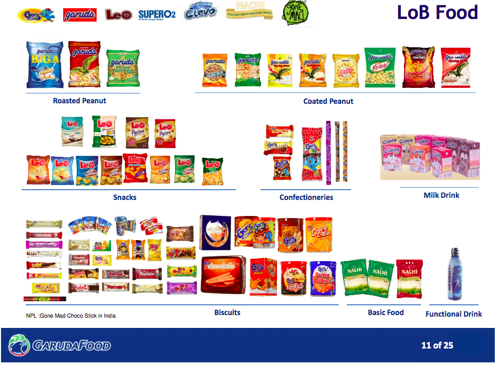 dimana PT GarudaFood Putra putri Jaya adalah perusahaan yang menjalankan LoB Food. Beberapa produknya antara lain sebagai berikut: