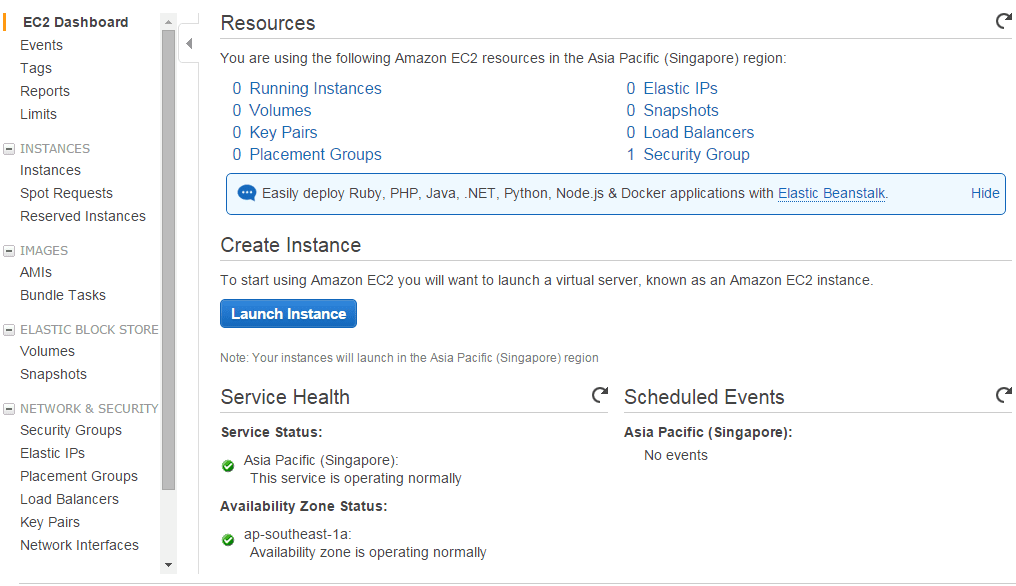 Pada dashboard ini kita akan melihat informasi dari service EC2 atau virtual server yang kita bangun di AWS.