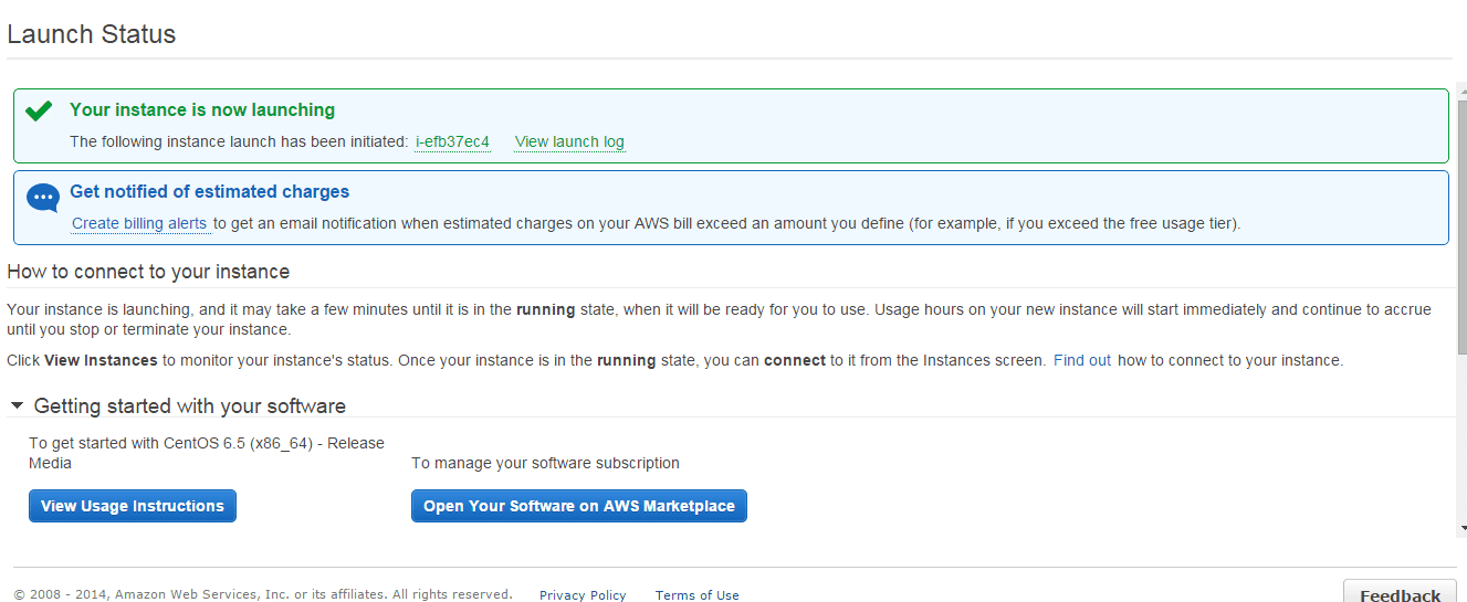 Selanjutnya launch instance dan ditampilkan launch statusnya.