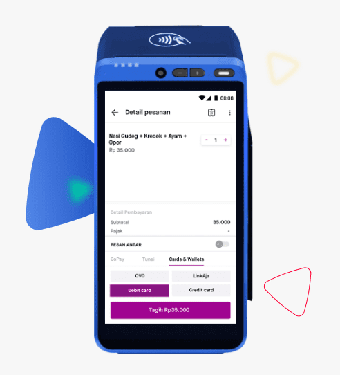 Dengan mesin EDC ini, pembeli bisa membayar dengan berbagai macam metode pembayaran non tunai, seperti GoPay hingga kartu debit. - Mencatat semua tipe pembayaran.