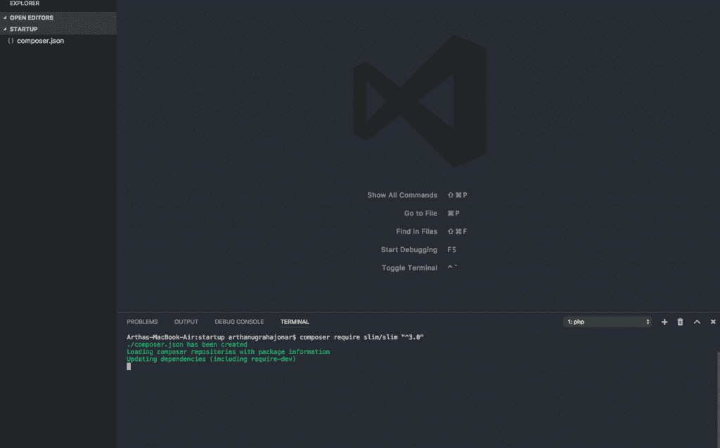 saya asumsikan semua sudah clear ya. Kamu sudah setting composer, sudah punya web server seperti xampp atau mamp atau yang lainnya dan tidak lupa kamu sudah pakai editor, terserah bisa apa saja. Saya pakai editor Visual Code dari Microsoft.