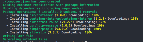 perintah tersebut akan mengambil file Slim Framework berdasarkan paket yang didaftarkan di https://packagist.org/.