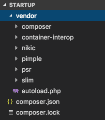 Selanjutnya buka folder vendor. Di dalam folder vendor inilah core utama Slim Framework. Kita disarankan tidak otak-atik folder ini kecuali sudah expert dan memahami struktur core Slim Framework.
