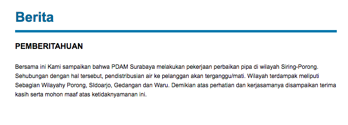 Hari ini saya mendapati air PDAM di rumah saya mati. Lalu istri saya memberikan capture dari website sidoarjo (http://pdam.sidoarjokab.go.id/)seperti ini: