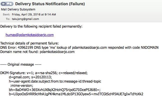 Saya akhirnya mencoba email, ternyata email yang terkirim failed