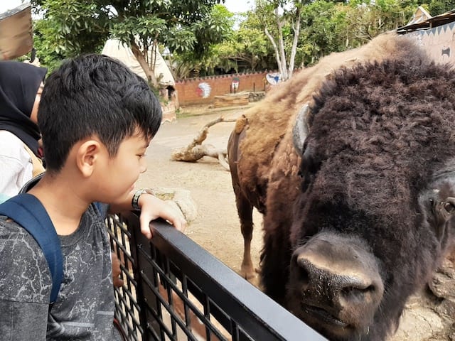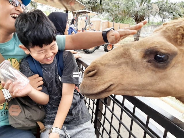 Salah satu wahana yang paling seru adalah menaiki ATV lalu berjalan melewati kandang rusa, unta, badak. Kita bisa melihat binatang tersebut dari dekat, juga bisa memberi makan kepada binatang tersebut. Seru juga ya.