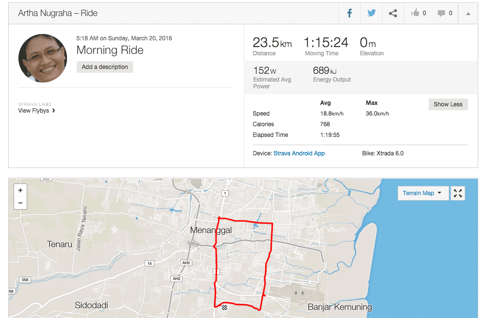 saat ini target sebetulnya bukan pada speed, cuma ketahanan dalam mengayuh sepeda. Targetnya bisa mengayuh setiap workout sepanjang 100 km, setelah itu baru fokus ke speed. Maklumlah usia sudah tidak muda, cuma semangat saja yang masih menggelora, hehehe.